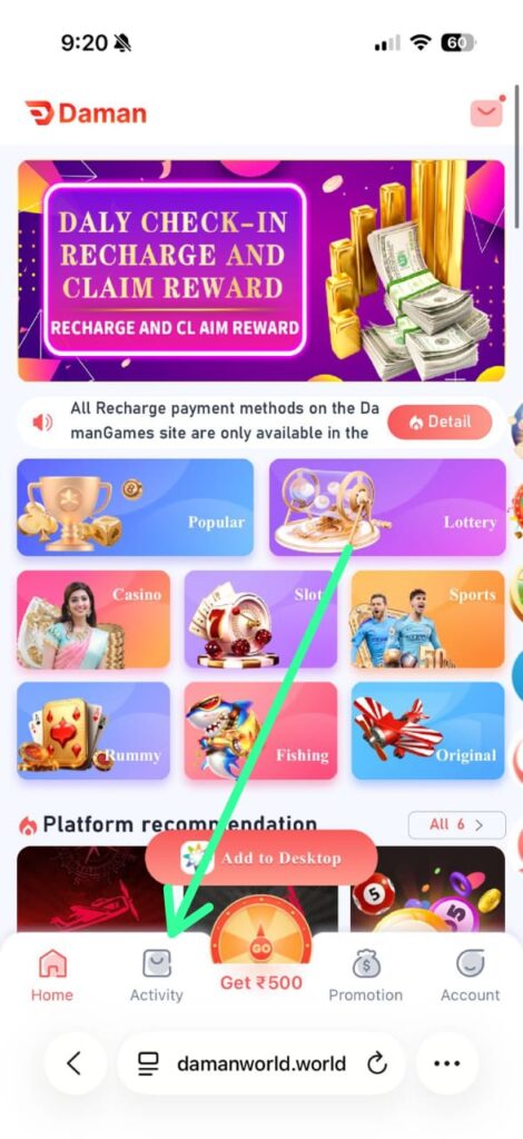 2). Click on Activity Section